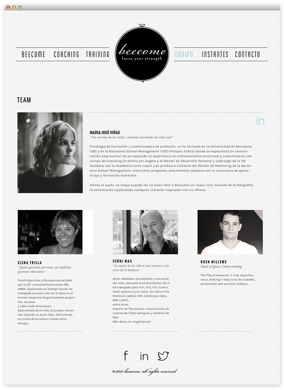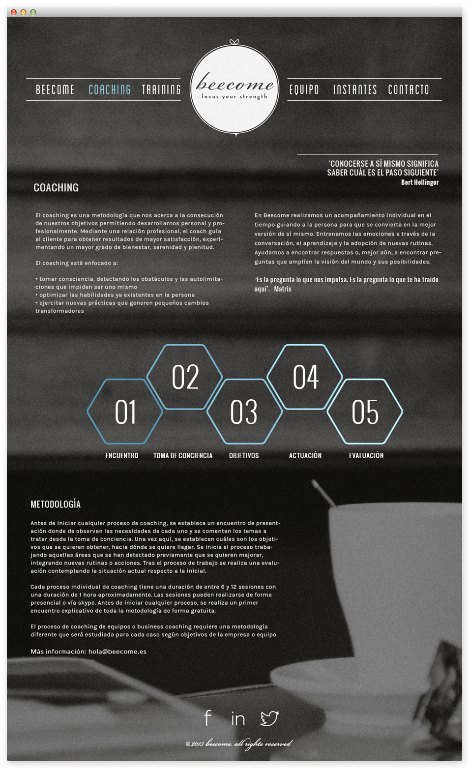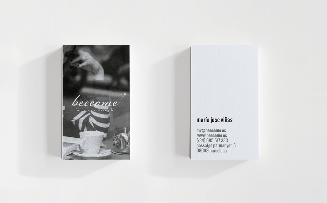 Imatge corporativa, papereria, disseny web i programació per a Beecome, empresa d’entrenament emocional i comunicació.