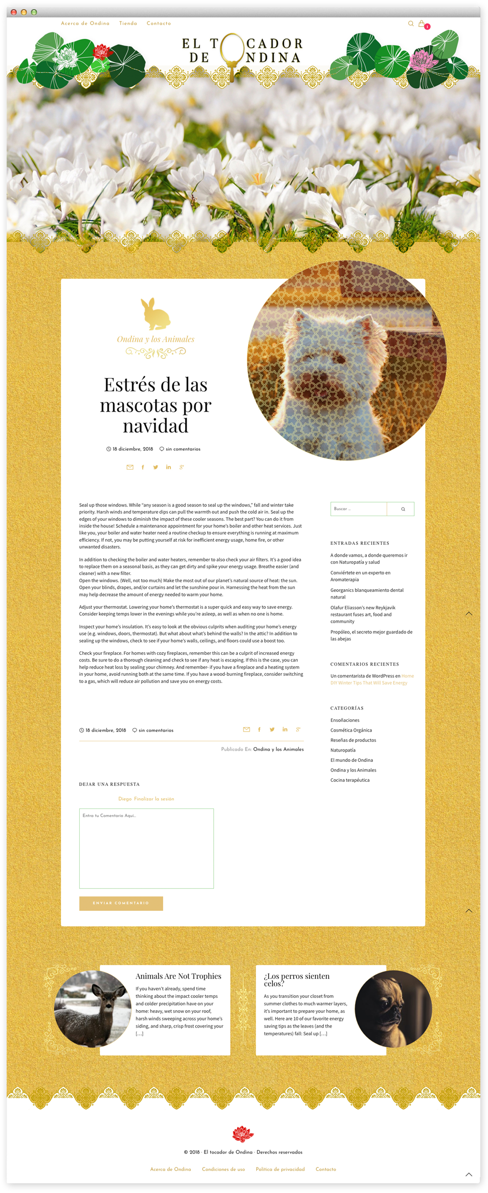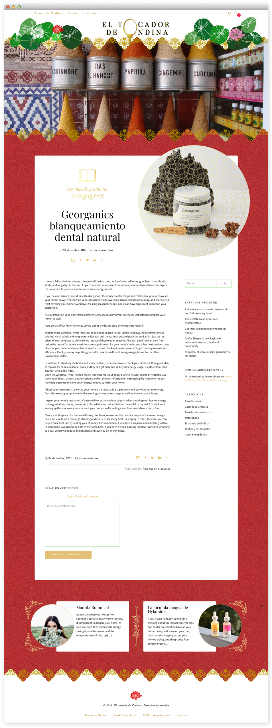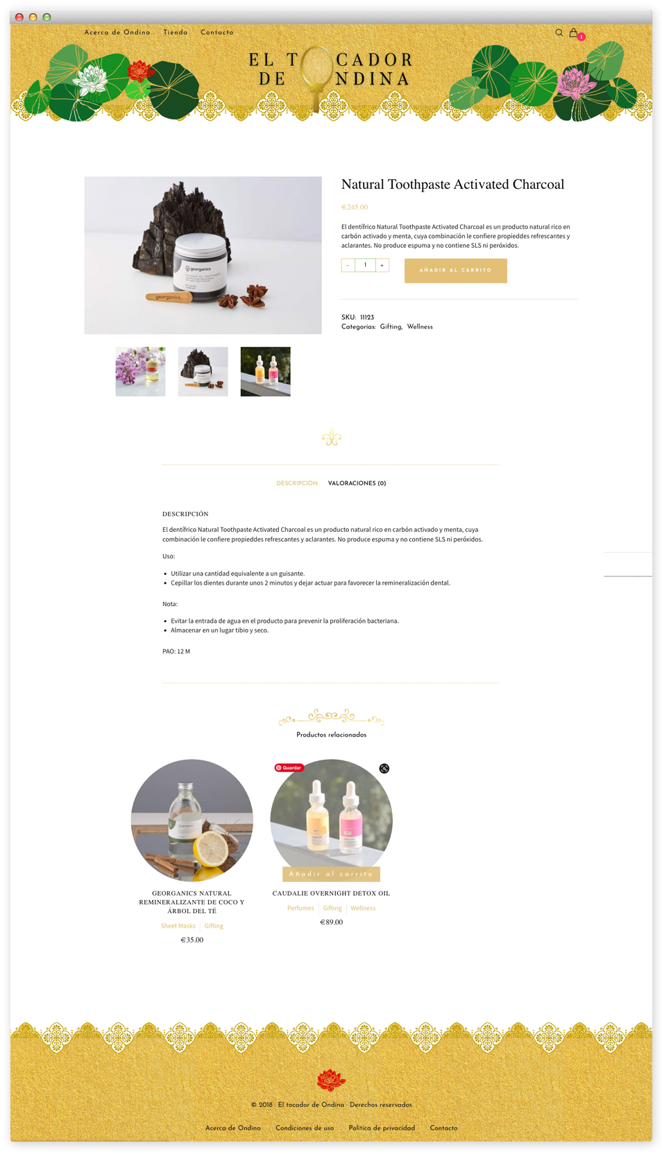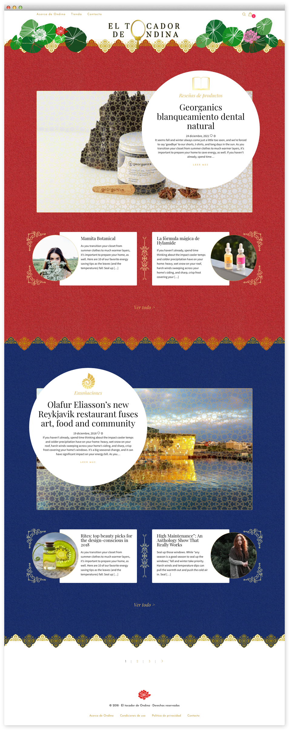 Disseny i acompanyament poètic pel preciós projecte d’e-commerce “El tocador de Ondina”, amb el que hem aconseguit quelcom impossible i al mateix temps imprescindible per al client: una página web daurada, lleugera como el pa d’or, intensa com les espècies de la Índia i màgica com les ninfes d’aigua. Un somni delicat i vibrant. Branding, disseny i desenvolupament web.
