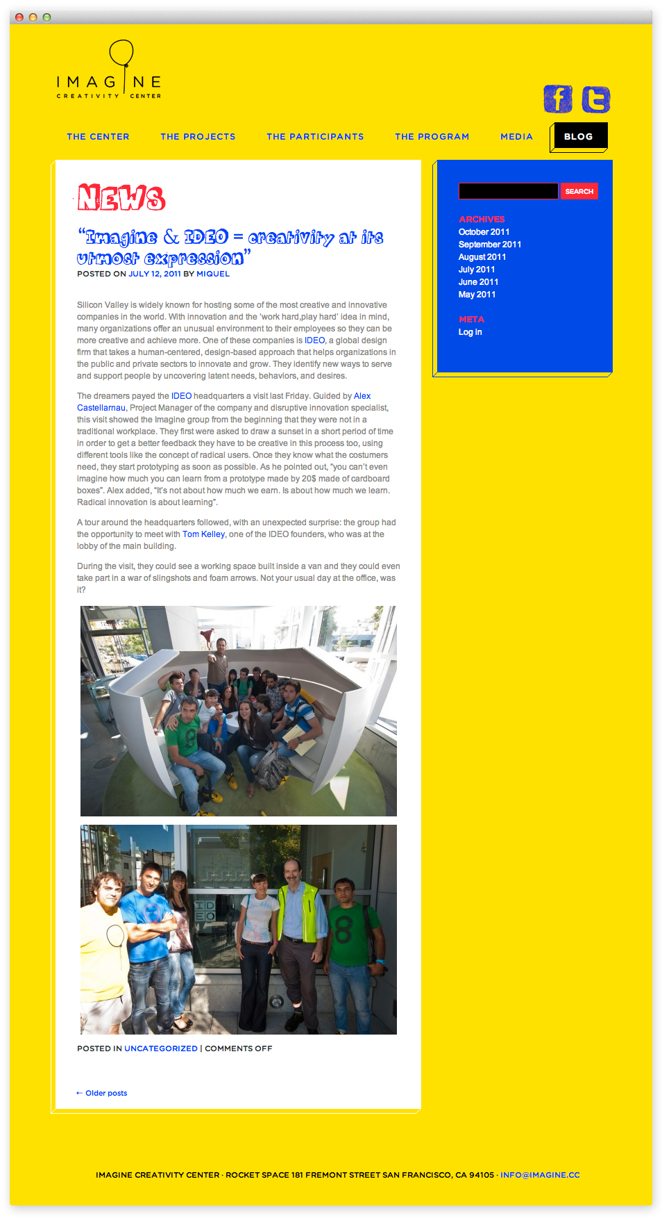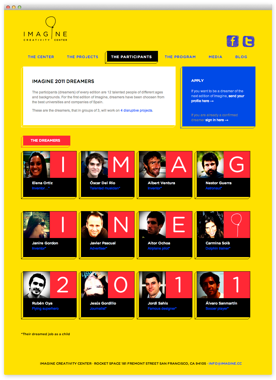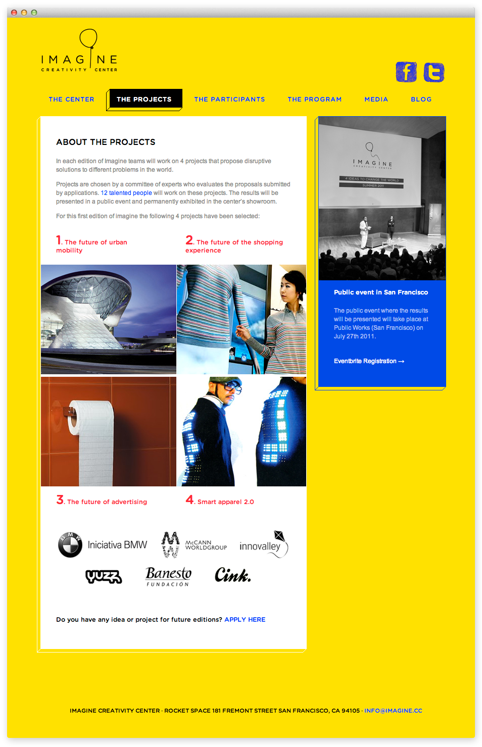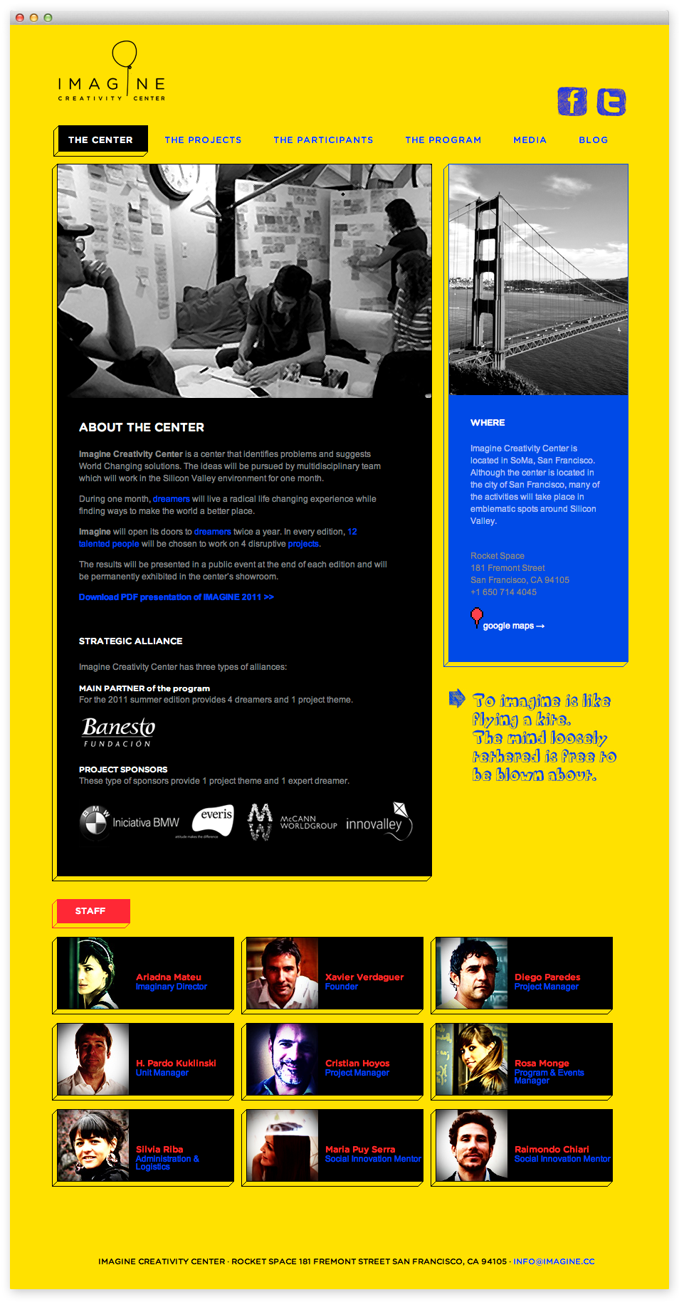 Haiku Studio, com a soci fundador de Innovalley, empresa de innovació amb seu a San Francisco líder de Imagine, va col·laborar en la creació del centr de creativitat per a emprendedors Imagine des del seus inicis: ens vem encarregar de la definició creativa del projecte, branding i naming, definició del programa acadèmic, disseny corporatiu (logotip, papereria, merchandising), disseny i programació web, així com de la direcció creativa de la primera edició com a project manager i directora imaginària del centre.