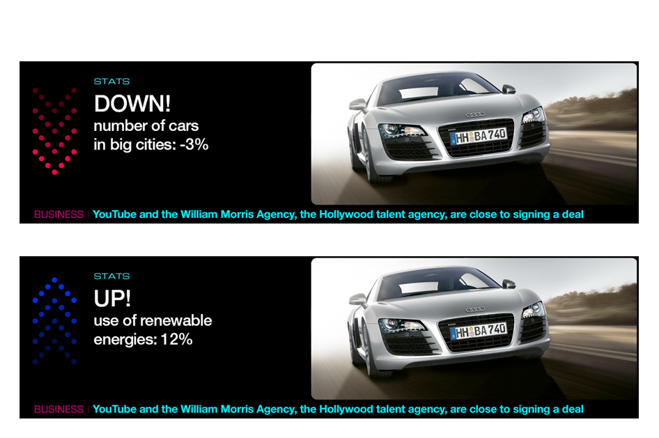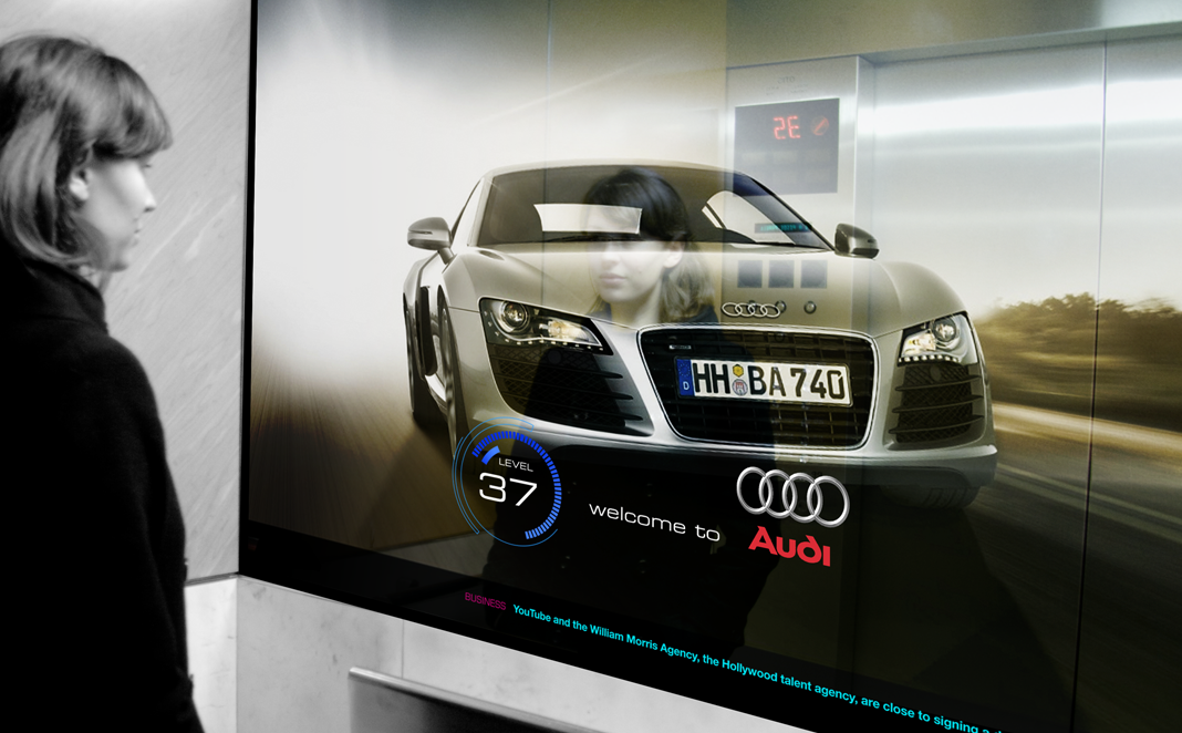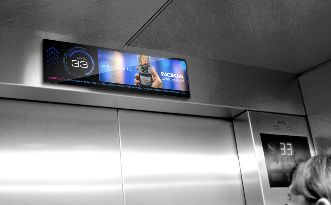 Up & Down: The screens could display interesting statistical data depending on whether the elevator is going up or down. Advertising campaigns could also be created asccording to these statistical data and appear only when the elevator is going up or down.
