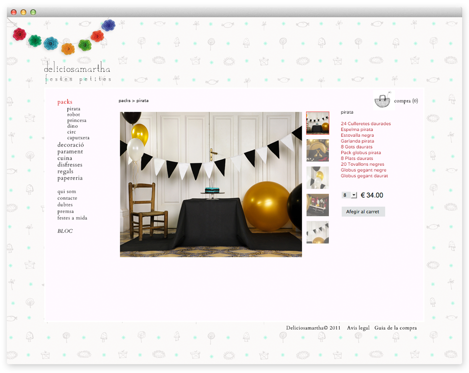 Web design and development for Deliciosamartha festes petites, e-commerce focused on tiny beautiful parties for little humans.