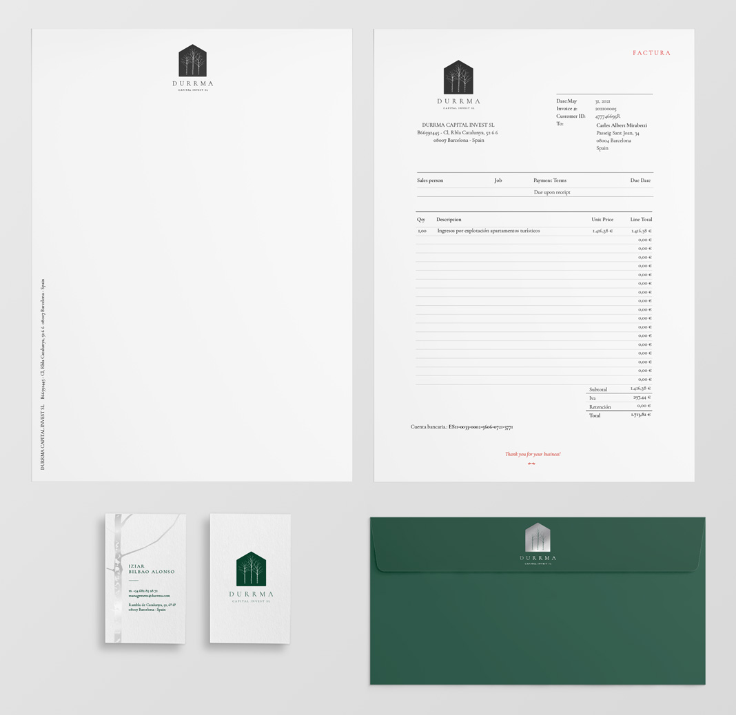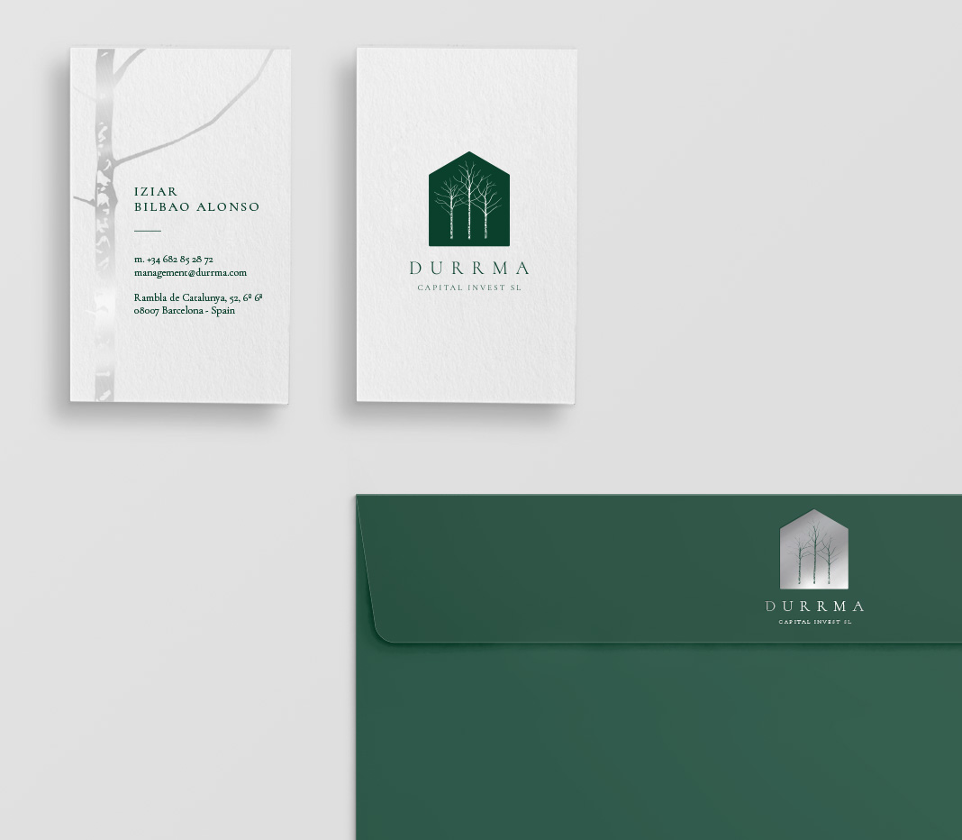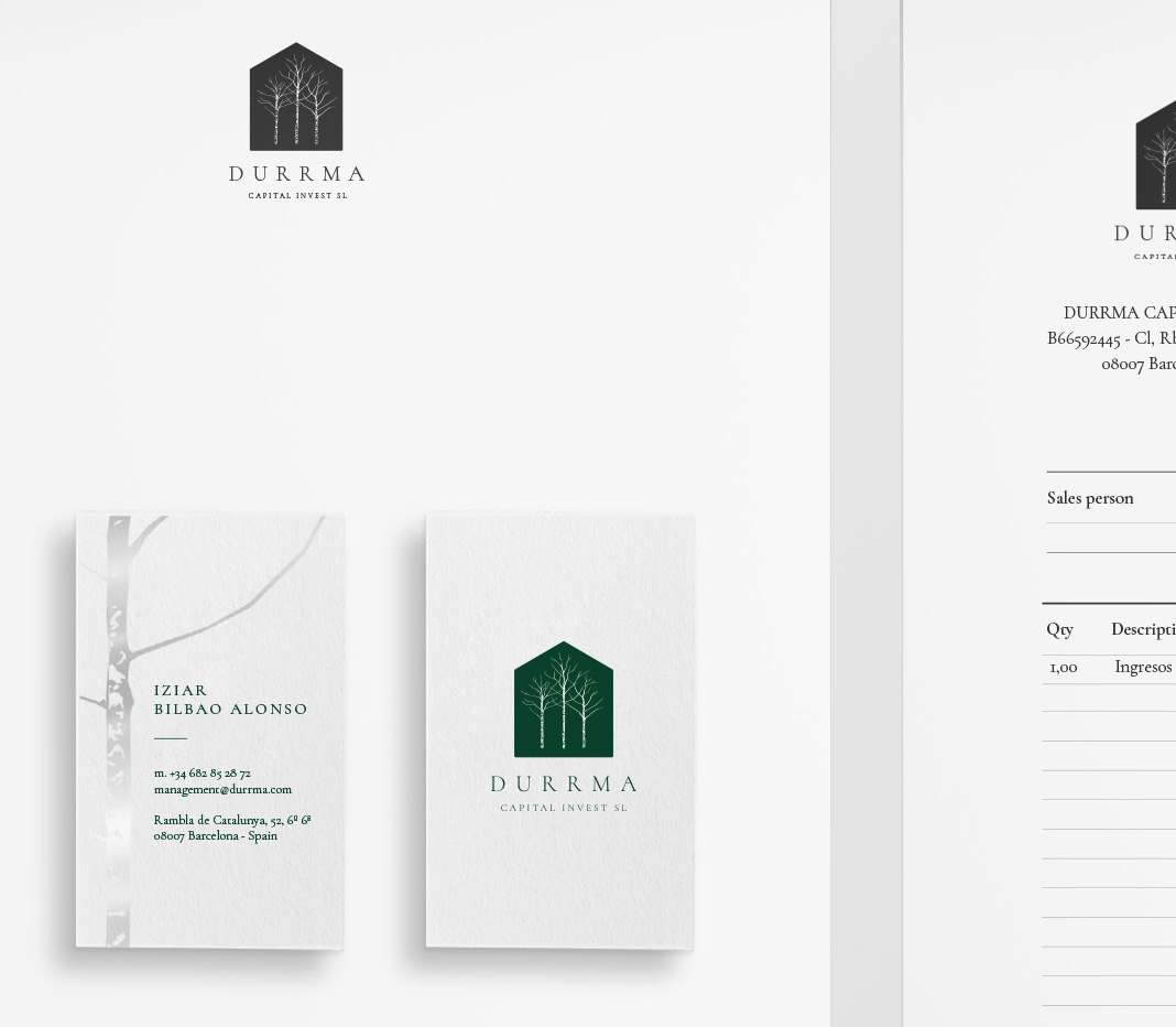 Corporate branding design for Durrma, Capital Invest. Logo, and stationery design: paper, cards and envelope.