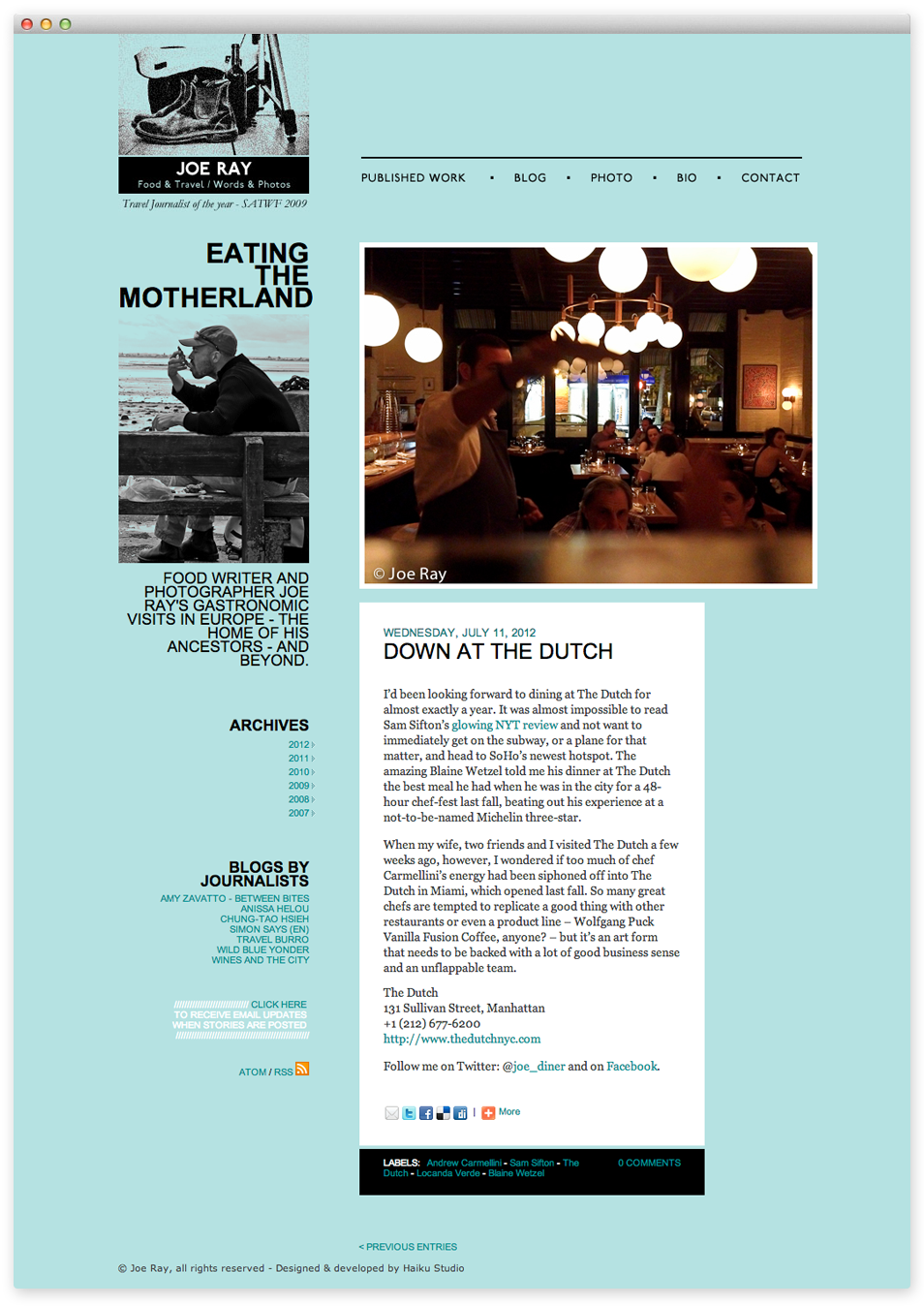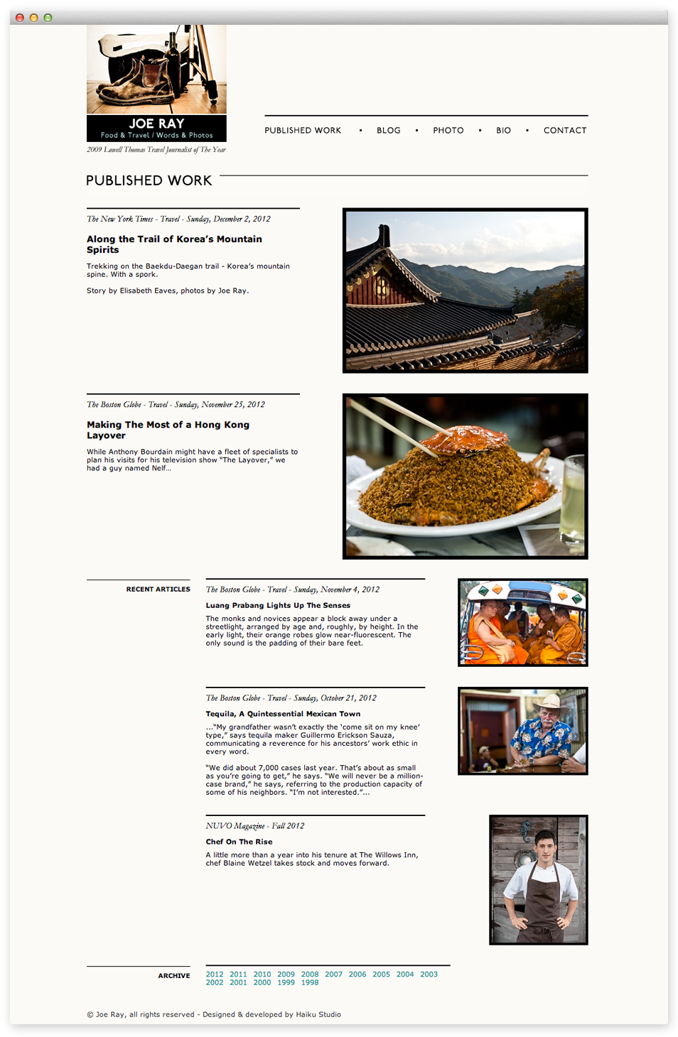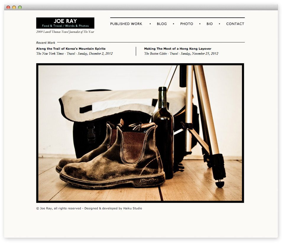 Web design and development for the Boston Globe’s food critic and photographer Joe Ray.