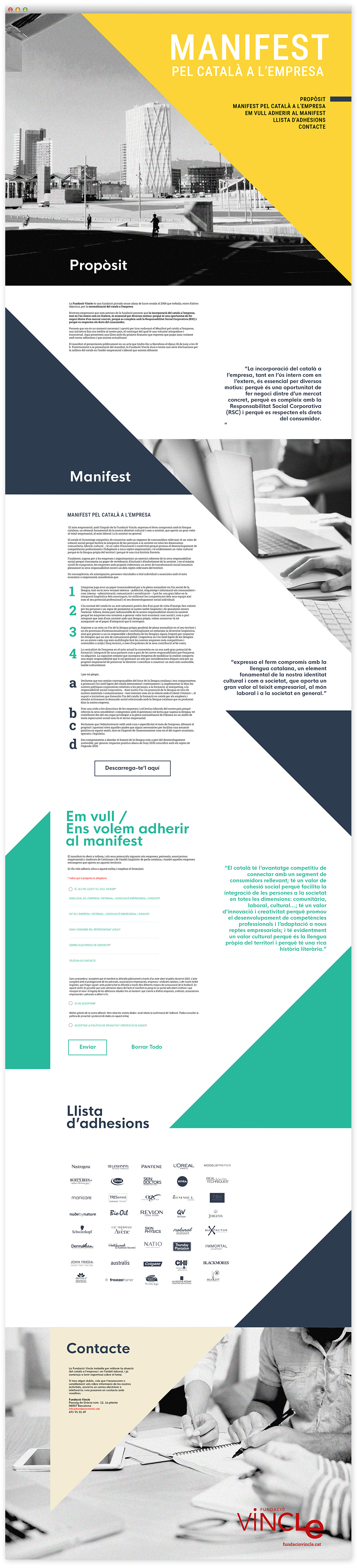 Web design, architecture and content management for the a form page to adhere to the Manifest for the use of the Catalan language in business, promoted by Fundació Vincle.