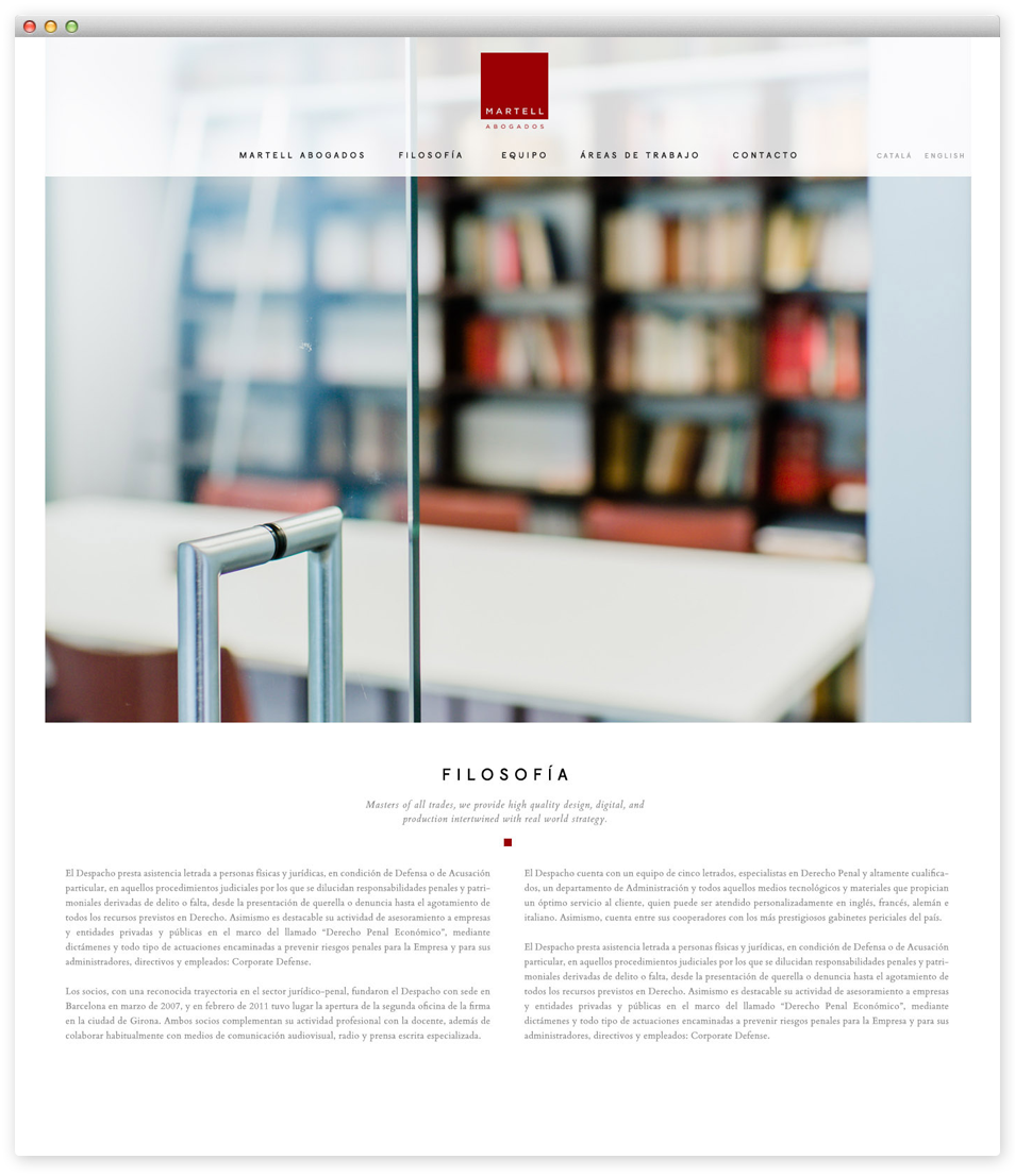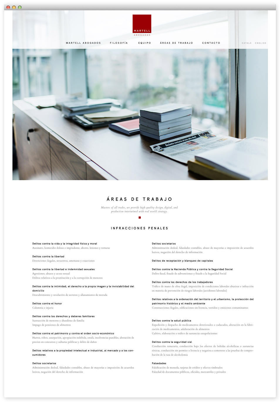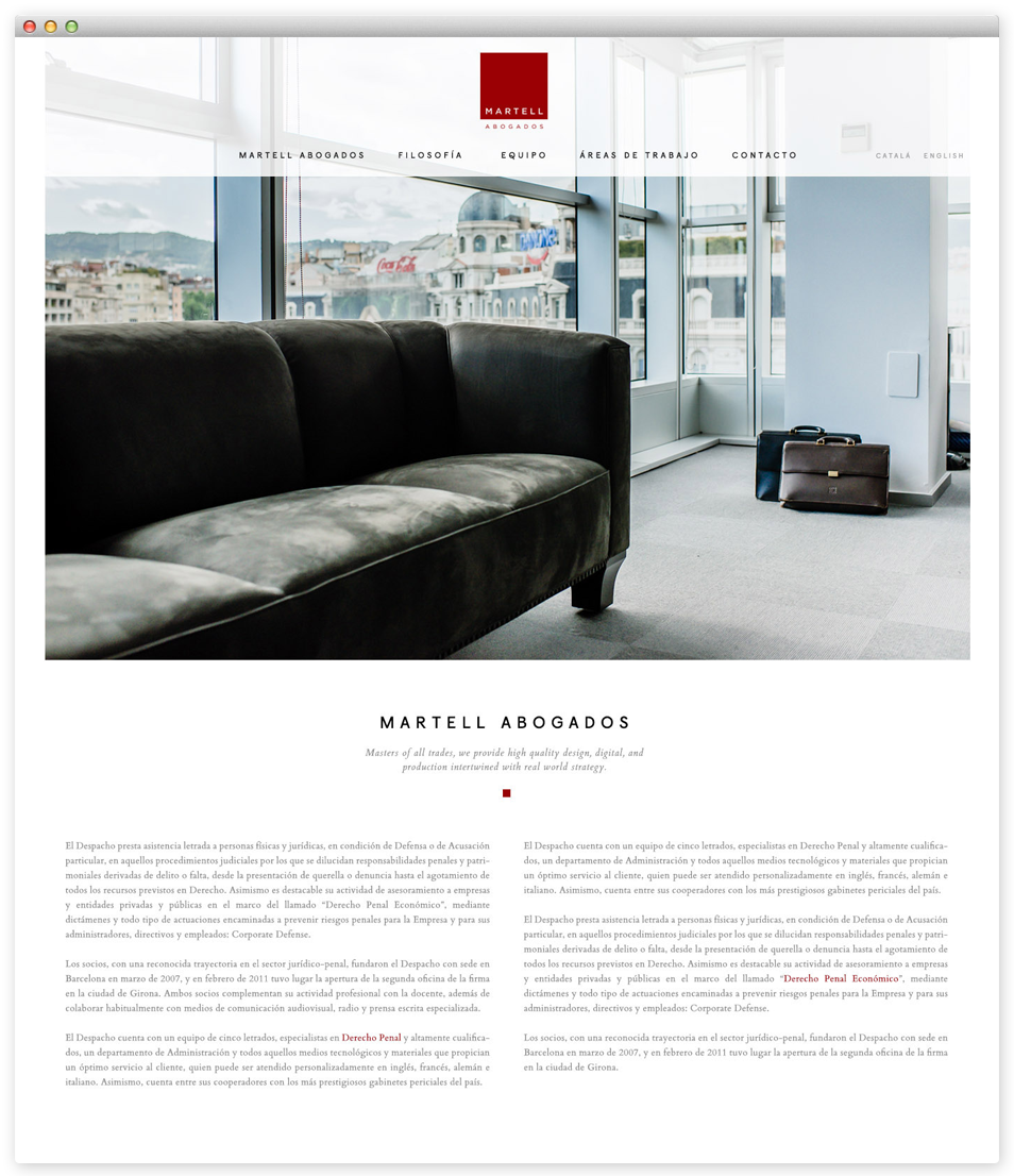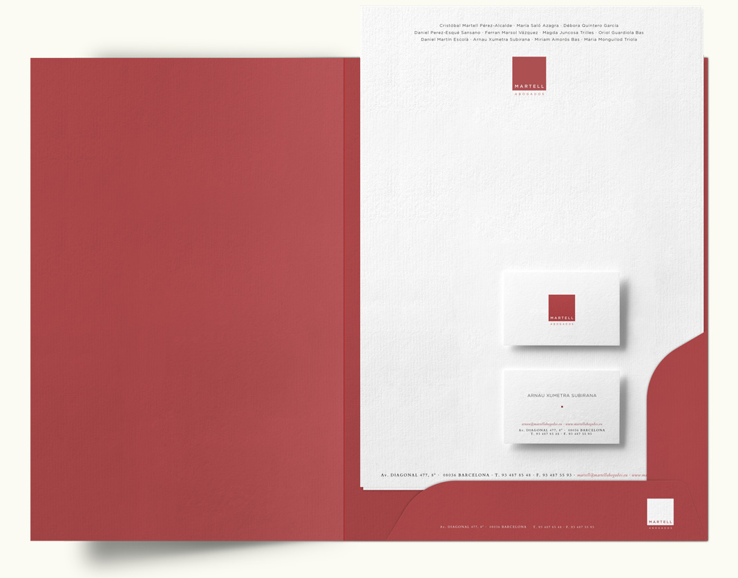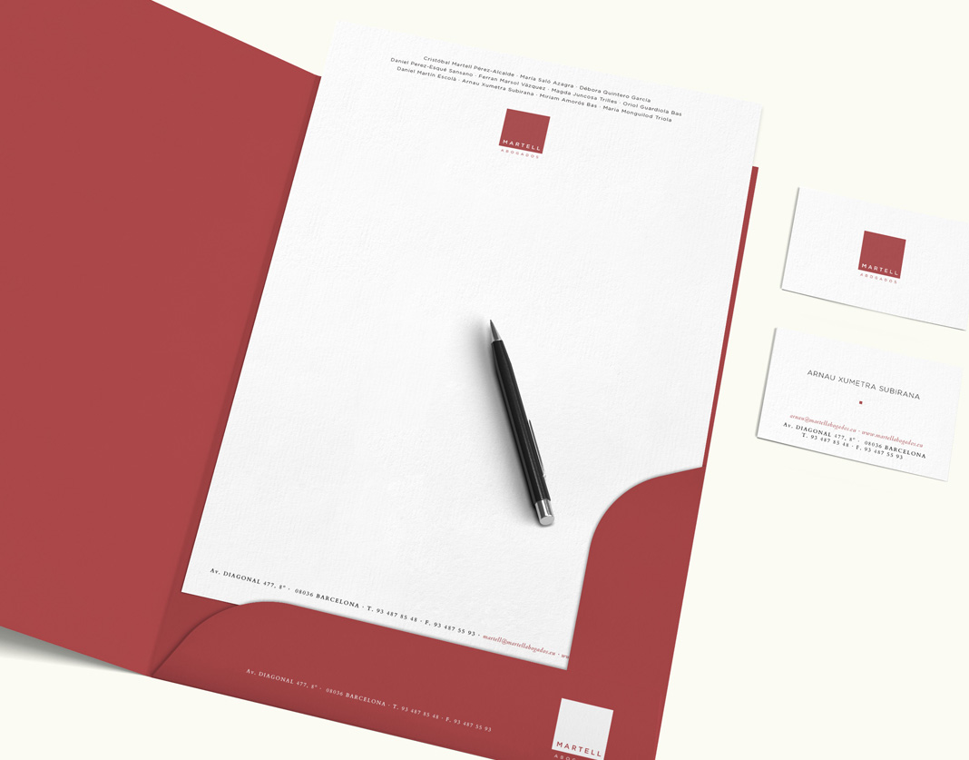Branding for Martell Abogados (logo, stationery items and business cards). Corporate photography and web design.