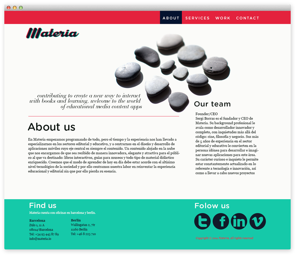 Branding design, cards and stationery items and web design for the tech company Materia.